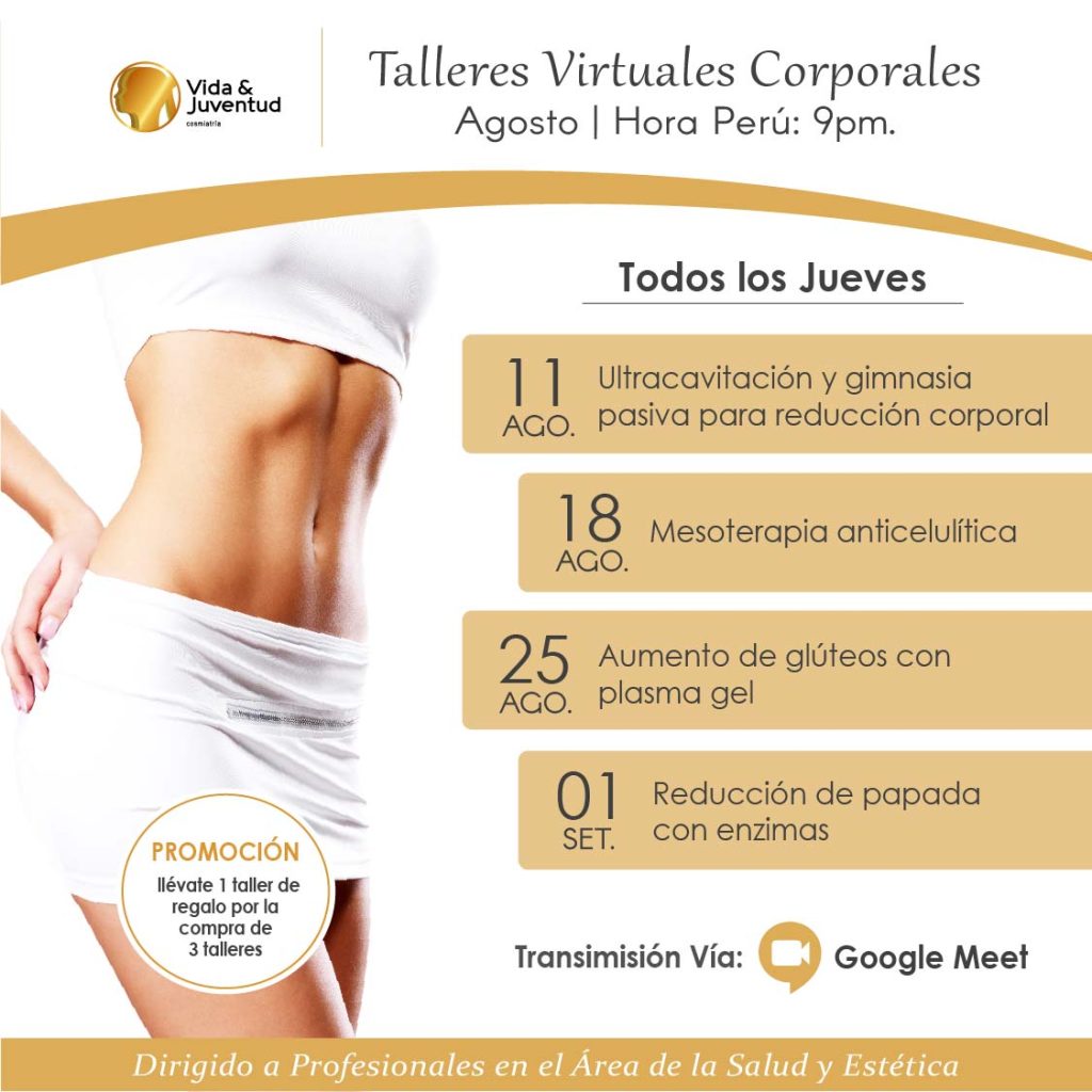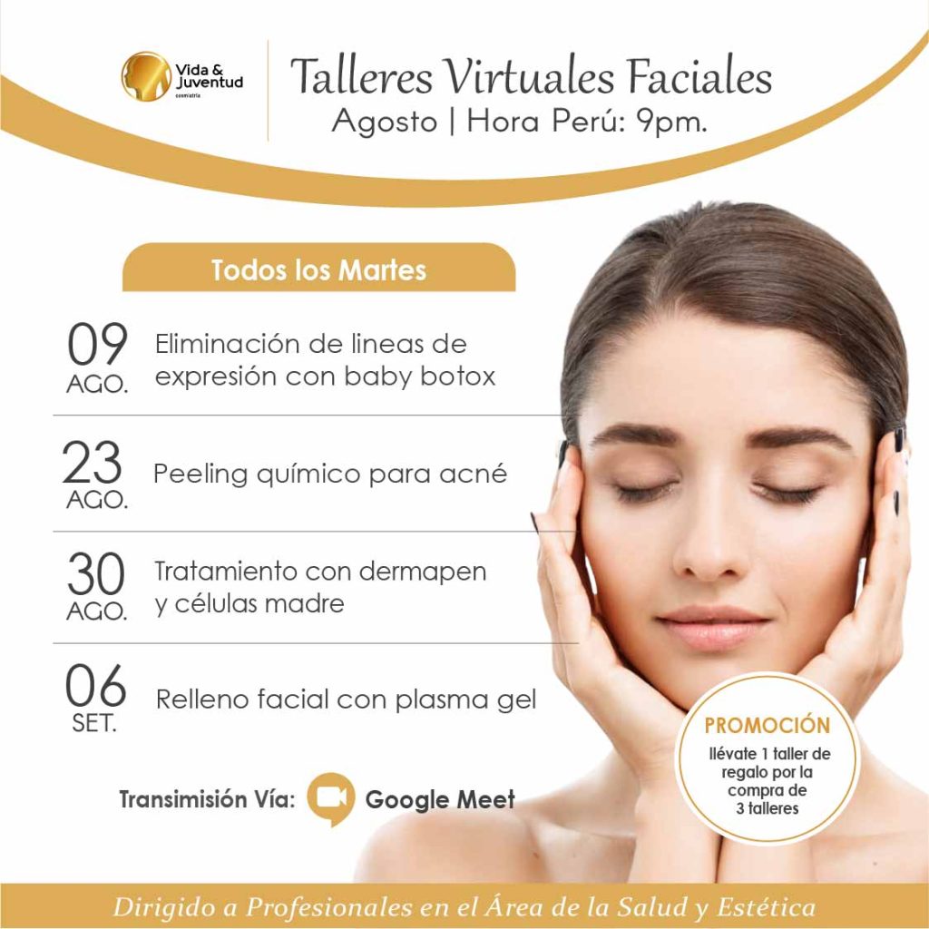 Programación de talleres virtuales faciales y corporales con práctica demostrativa. Dirigido a Profesionales en Estética y Área de la Salud.
