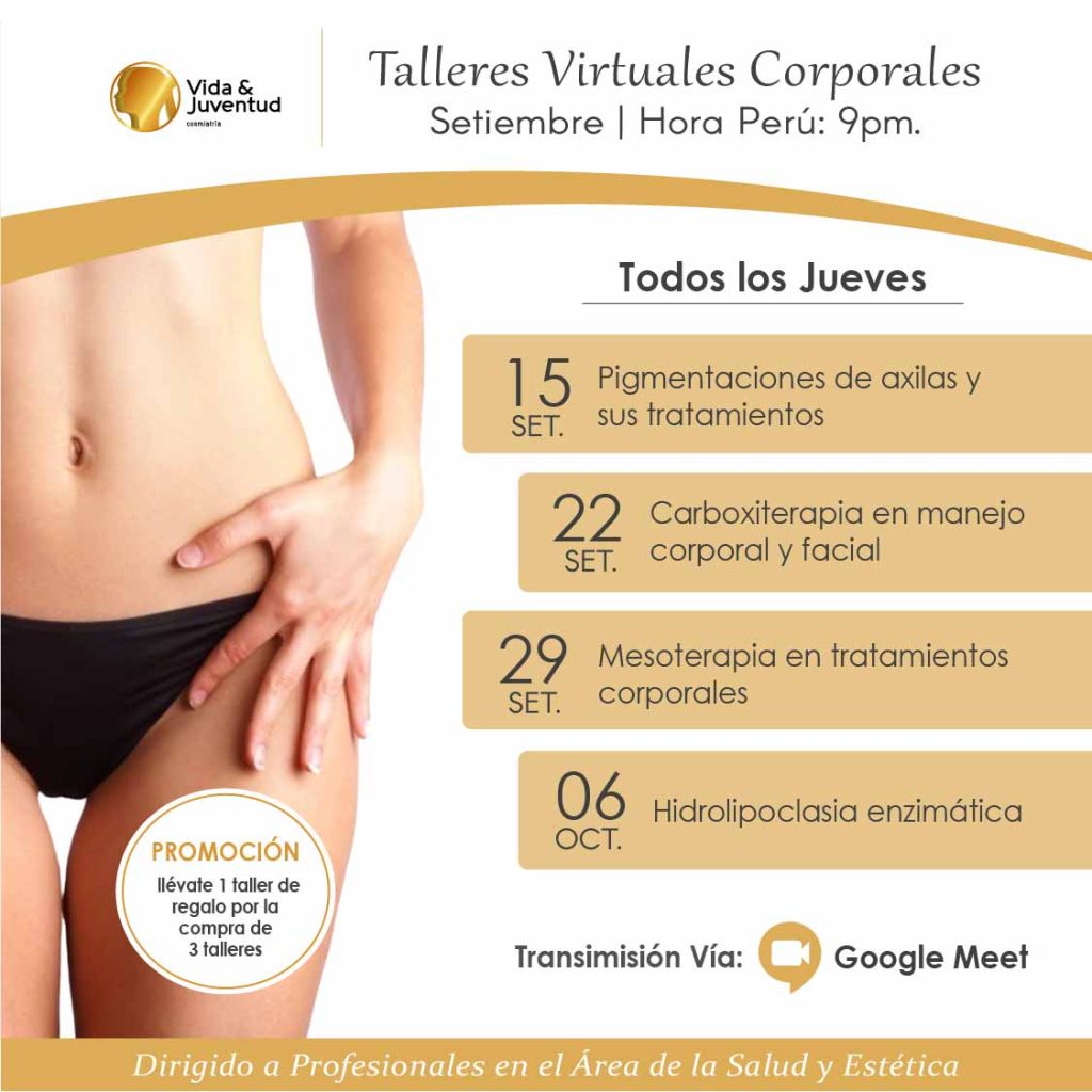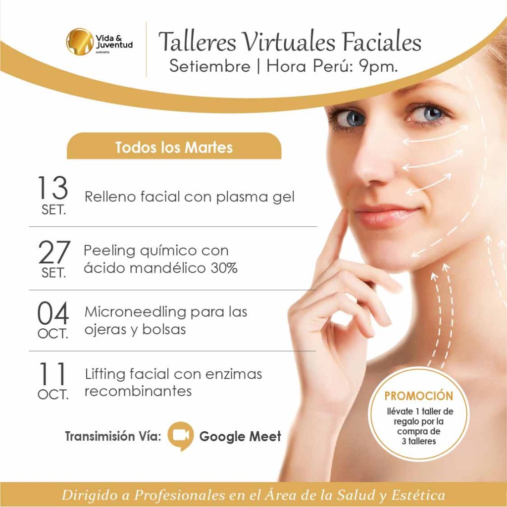 Programación de talleres virtuales faciales y corporales con práctica demostrativa. Dirigido a Profesionales en Estética y Área de la Salud.