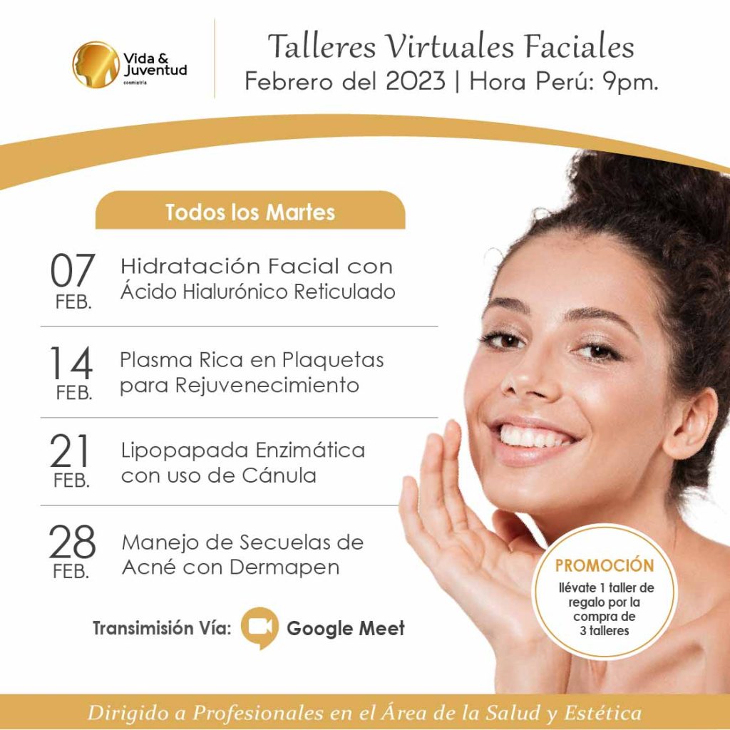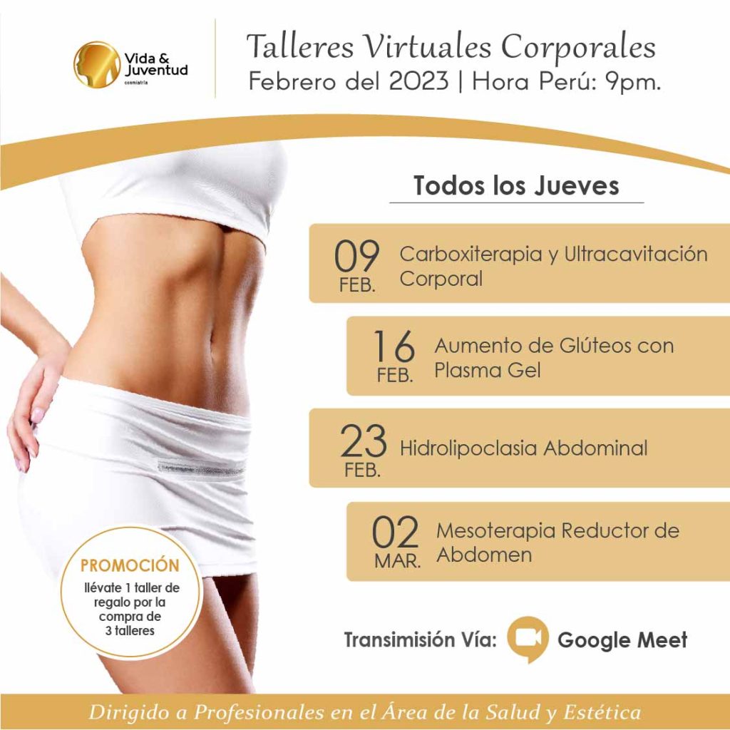 Programación de talleres virtuales faciales y corporales con práctica demostrativa. Dirigido a Profesionales en Estética y Área de la Salud.
