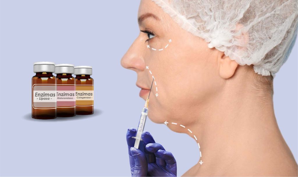 Se trata de la infiltración de las populares Enzimas, que son moléculas orgánicas, las cuales aceleran la velocidad de reacción, permitiendo en poco tiempo una reducción, moldeamiento natural de la papada y perfilado facial, con apariencia más juvenil, además de una piel suave e hidratada.