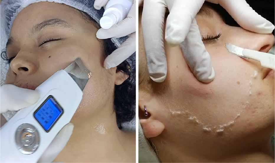 Aprende 2 tipos de peeling. La Paleta Ultrasónica es un dispositivo que cuenta con un cabezal de acero quirúrgico, capaz de realizar un peeling no invasivo mediante sus ondas de vibración, consiguiendo limpiar el cutis en profundidad y reducir imperfecciones. El Dermaplaning es un bisturí quirúrgico estéril que provoca la remoción de células muertas, impurezas y vello facial.